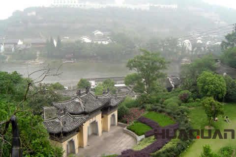 苧蘿山是西施的出生地,座落諸暨城南、浣江西側(cè),因盛產(chǎn)苧麻而得名。雖然此山僅高數(shù)十米,方圓也不過(guò)三里,但端秀玲瓏,翠巒玉立。尤其是山上裸露的巖石都呈現(xiàn)赭紅色,俗稱“紅粉石”。相傳西施每次化完妝便將胭脂水潑在山石上,天長(zhǎng)日久,石頭便變?yōu)榧t色的了。